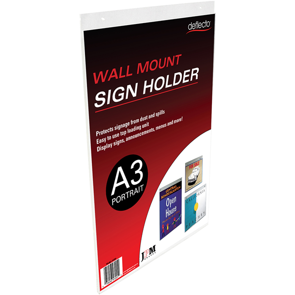 DEFLECTO SIGN HOLDER WALL MOUNT PORTRAIT A3 CLEAR