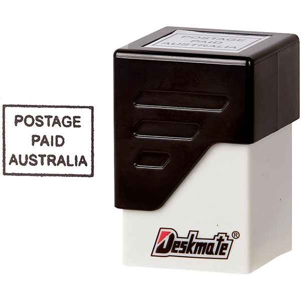 DESKMATE PRE-INKED MESSAGE STAMP POSTAGE PAID BLACK