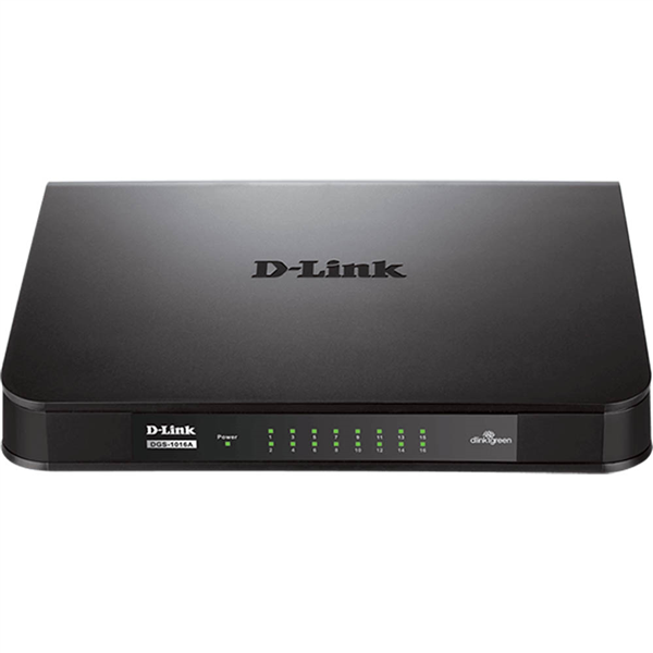 16 Gigabit Ethernet ports for fast network speeds Fanless design for silent operation Auto MDI/MDI-X crossover for all ports Full/half-duplex for Ethernet/Fast Ethernet speeds Supports 9,216 Bytes Jumbo Frames RoHS-compliant Hassle-free plug and play installation Gigabit on Every Port- The 16/24-Port Gigabit Switch brings the speed of Gigabit Ethernet to each and every port for a truly high-speed network. If your network has a mix of legacy and modern computing capabilities, each port allows for standard Ethernet, Fast Ethernet, or Gigabit Ethernet connections. You have the latest technology available to every computer and device connected to your network Innovative Design- The sleek plastic case of the DGS-1016A/1024A series is an industry first for a Gigabit SOHO/SMB switch. Using a compact desktop style helps reduce heat levels and allow for a fanless design, making the switches silent, as well as economical. The 16/24-Port Unmanaged Gigabit Switch series is small, lightweight, wall-mountable, and ideal for any business with big needs and a small budget Conserves Energy- The 16/24-Port Unmanaged Gigabit Switch series helps you conserve energy automatically through several methods. It automatically powers down ports that have no link, allowing the switch to save substantial amounts of power by cutting power usage for unused ports or any ports connected to computers that have been shut down. It can also detect connected cable lengths, and adjusts power usage accordingly, helping you save energy without affecting networking performance