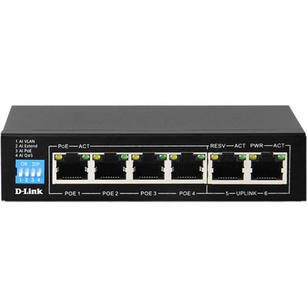 D-LINK DGS-F1006P-E, 6-Port PoE Switch with 4 Long Reach 250m PoE Ports and 2 Uplink Ports