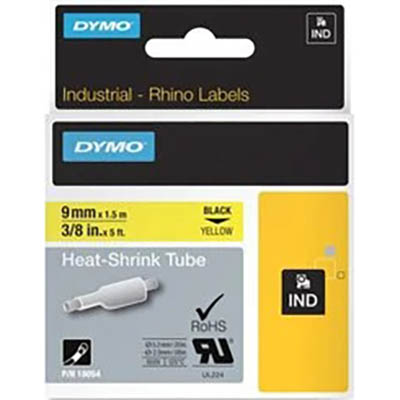 DYMO 18054 RHINO INDUSTRIAL HEAT SHRINK TUBING 9MM BLACK ON YELLOW