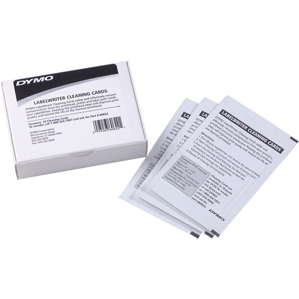 Keeping the printhead clean will improve print quality and extend the life of your thermal printhead Remove contamination from the printhead, platen, and label path inside your Dymo LabelWriter 10 x Cleaning Cards per box