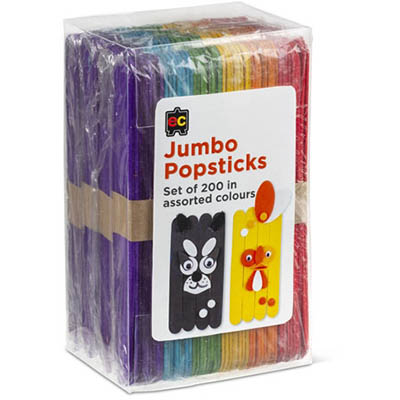 200 colourful assorted jumbo coloured craft sticks These big coloured craft sticks are ideal for school activities and for engaging kids in activities Kids will surely have fun with these wide, coloured, wooden sticks building boxes, rafts and creating other projects