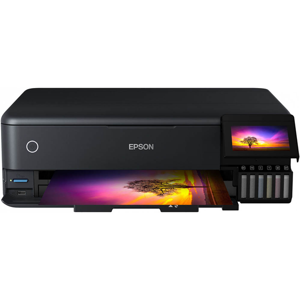 6-Colour Ink System - The Epson Claria ET Premium inks produce high-quality, long-lasting photos up to A3+ size as well as outstanding black and white photos with the new grey ink. The pigment black ink is ideal for printing sharp text on plain papers Save Time and Money - This economical printer allows you to print up to 2,300 high-quality photos with one set of ink bottles. The bottles and tanks are designed for ease of use, meaning no hassle or mess when it's time to refill Modern Flexibility - With full Wi-Fi, Wi-Fi Direct, and Ethernet connectivity, you can easily integrate this printer with your existing home set-up. You can also print from SD cards and USB flash drives through the 10.9cm colour touchscreen Artistic Media Compatibility - The ET-8550 has photo-size and A4 front paper trays plus will print directly to suitable CDs/DVDs. The A3+ rear tray also accepts speciality media such as craft papers and card, whilst the A3+ straight paper feed means you can print on media up to 1.3mm thick and 2m long! Epson Smart Panel App - This app enables you to control your printer from your smart device. Print photos, copy documents, set up and troubleshoot your printer, and let your creativity flow with a wide range of artistic templates Heat-Free Technology - Engineered with Micro Piezo heat-free technology, you can enjoy consistent high-speed printing, with greatly reduced energy consumption so you can save time and money 6-colour Epson Claria ET Premium Ink: Print A3+ borderless colour images and stunning black and white photos Ultra-low-cost printing: Prints up to 2,300 high-quality photos with one set of ink bottles Modern connectivity: Wi-Fi, Wi-Fi Direct, Ethernet and Apple AirPrint enabled For work and play: A4 and photo-size paper trays plus two A3+ rear feeds for thicker media Double-sided printing (A4 size only): Print sharp text on A3+ and A4 documents with the pigment black ink