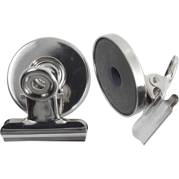The Esselte magnetic bulldog clip has a strong metal clamp to hold your papers firmly Magnet allows mounting to any metal surface Perfect for a filing cabinet, whiteboard or fridge 30mm round magnet