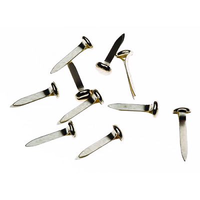 Brass-plated steel, with a round head and spear point Made from sturdy tinned steel
