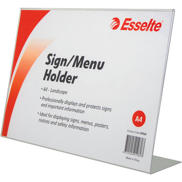 ESSELTE SIGN / MENU HOLDER SLANTED LANDSCAPE A4 CLEAR