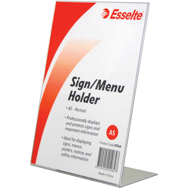 ESSELTE SIGN / MENU HOLDER SLANTED PORTRAIT A5 CLEAR