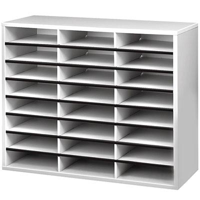 Includes 24 x A4 size sorting compartments Sturdy melamine faced particle board construction with corrugated board compartments Minimal assembly required Individual compartment labelling areas