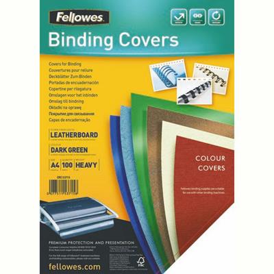 FELLOWES BINDING COVER LEATHERGRAIN 230GSM A4 DARK GREEN PACK 100