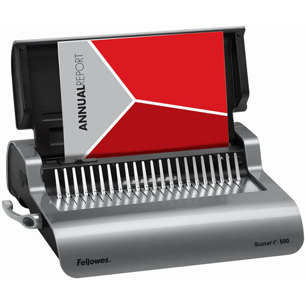 The Fellowes Quasar-E 500 manual binding machine is ideal for use in the mid to Large Office