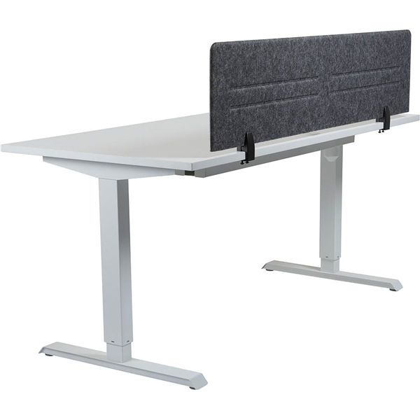 Great looking option to use as a divider between desks, it is lightweight and easy to install Hedj screens are manufactured using multi-layered PET material that is moulded under very high pressure to create a stronger, better finished product Hedj screen for mounting on top of desk Screen offers visual and acoustic privacy for fixed and sit-stand desks With moulded radiused corners and rigid sides for stability and only 15mm thick Hedj above PET screen with top mounting brackets, screen top 340mm above worktop Fully moulded PET screen Pinnable Lightweight Great design Stronger 3 layer construction Low in VOCs Easy clamp mount installlation