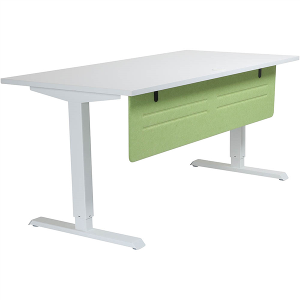 Great looking option to use as a divider between desks, it is lightweight and easy to install Hedj screens are manufactured using multi-layered PET material that is moulded under very high pressure to create a stronger, better finished product Hedj screen for mounting below the desk Screen offers visual and acoustic privacy for fixed and sit-stand desks With moulded radiused corners and rigid sides for stability and only 15mm thick Hedj below PET screen with undertop mounting brackets, screen finishes 340mm below worktop Fully moulded PET screen Pinnable Lightweight Great design Stronger 3 layer construction Low in VOCs Easy clamp mount installlation