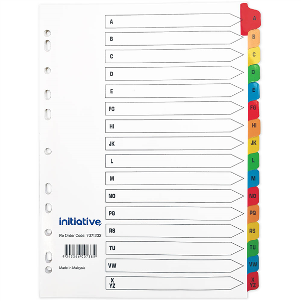 INITIATIVE INDEX DIVIDERS A4 A-Z TAB COLOURED