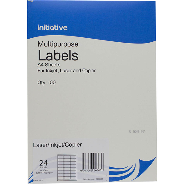 INITIATIVE MULTI-PURPOSE LABELS 24UP 65GSM 64 X 33.8MM PACK 100