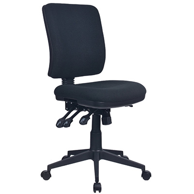 Ratchet back Seat slide Fabric covered moulded seat and back for extra support and comfort Seat and back tilt 5 star nylon base 120kg indicative weight rating 5 year warranty