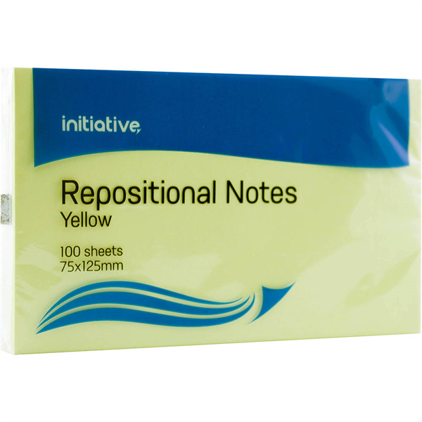 INITIATIVE REPOSITIONAL NOTES 75 X 125MM YELLOW PACK 12