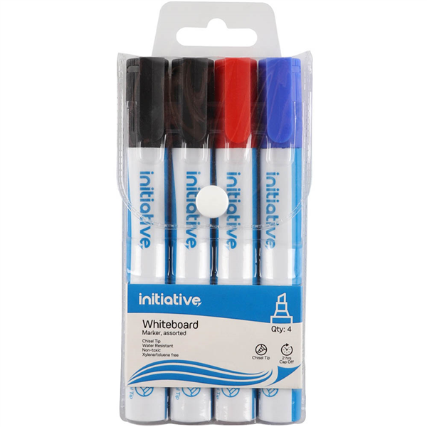 INITIATIVE WHITEBOARD MARKERS CHISEL 5MM ASSORTED WALLET 4