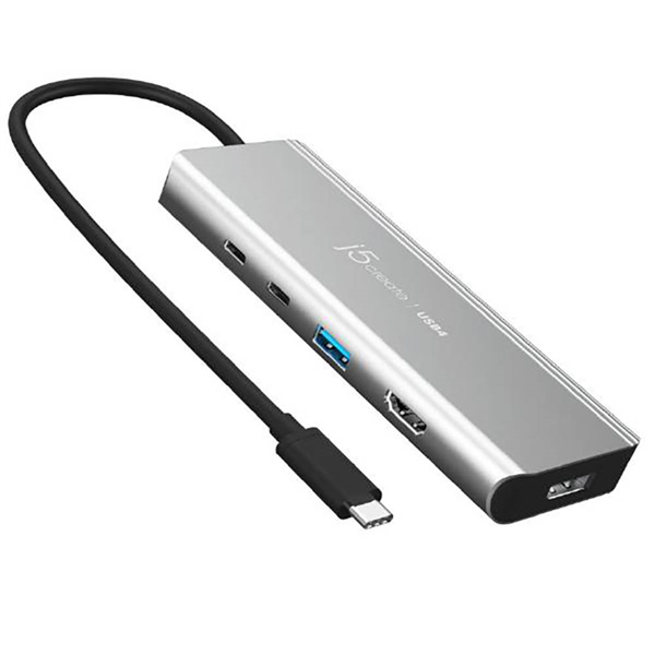 J5CREATE USB-4 DUAL DISPLAY 4K MULTI-PORT DOCKING HUB FEATURING INTEL USB4 CONTROLLER SILVER