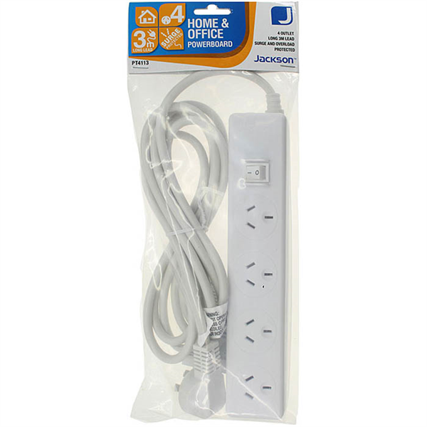 JACKSON POWERBOARD SURGE PROTECTED 4 OUTLET SWITCHED 3M WHITE