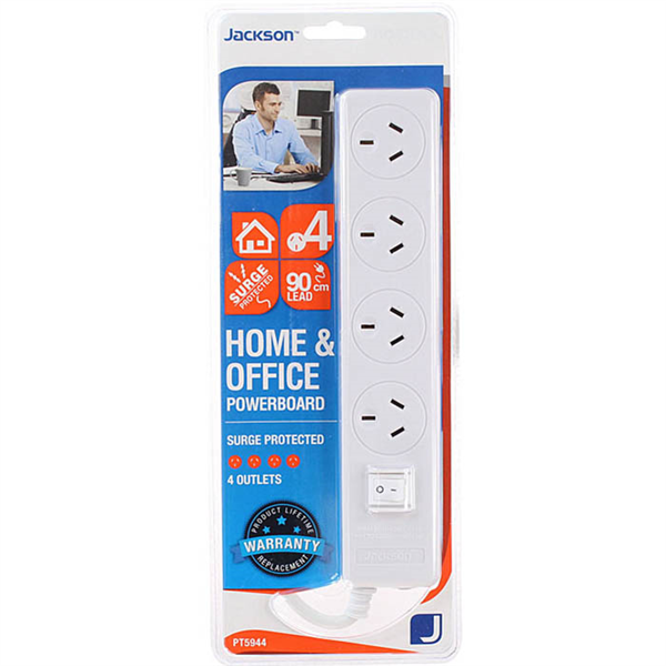 JACKSON POWERBOARD SURGE PROTECTED 4 OUTLET SWITCHED 900MM WHITE