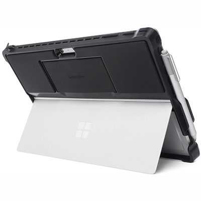 Valuable mobile investments like that need to be protected Kensington's designers have worked closely with Microsoft as a member of the Designed for Surface program and created the BlackBelt 2nd Degree Rugged Case. It surrounds the Surface Pro 4 in military-grade drop protection with an integrated hand strap for worry-free carrying The Type Cover can be easily attached or detached with the case on, and a strategic cutout preserves full functionality of the Surface kick stand Strong, rugged polycarbonate body designed to meet military-grade MIL-STD-810G testing protocols for rugged protection against drops Integrated silicone hand strap for easier, worry-free sharing and collaborating Type Cover channel allows for fast attaching and detaching of keyboard without having to remove case Quick-Fold Design allows the Type Cover to be folded up the backside of the case Unobstructed access via strategically designed cutouts for Surface kick stand, ports, jacks and cameras Surface Pen Holder keeps it from going missing Type Cover strap keeps the keyboard closed over the tablet screen Textured exterior makes it easy to grip and prevents it from sliding off table or desk Raised bezel protects screen from damage and scratches
