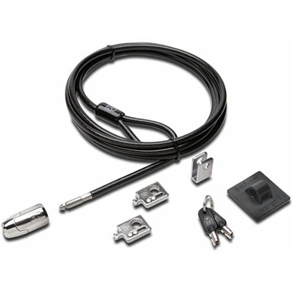 Multi-Piece Security - The anchor plate adheres to a flat surface and is designed to secure a device that does not have a Kensington Security Slot, the 2 adapters secure devices with a Kensington Security Slot and the cable trap secures your wired keyboard and mouse Cut-Resistant Cable - Made of engineered carbon steel, it offers the same level of cut-resistance and theft-resistance of much thicker cables while providing easier mobility Hidden Pin technology ensures tubular locks cannot be picked offering the highest level of security Anchor plate secures equipment without a Kensington Security Slot Everything you need to secure a desktop computer, two peripherals and a wired keyboard and mouse Cable trap secures a wired keyboard and mouse Multi-stranded 2.4m long, 5.3mm thick high-carbon aircraft-grade steel cable with carbon tempered steel core 3M VHB industrial adhesive tape on stick on anchor for non-Kensington Security Slot equipped peripherals - 645 x 645mm Online key code Register and Retrieve and replacement service Supplied with stamped steel and plated K-slot adapters and cable trap Two keys supplied