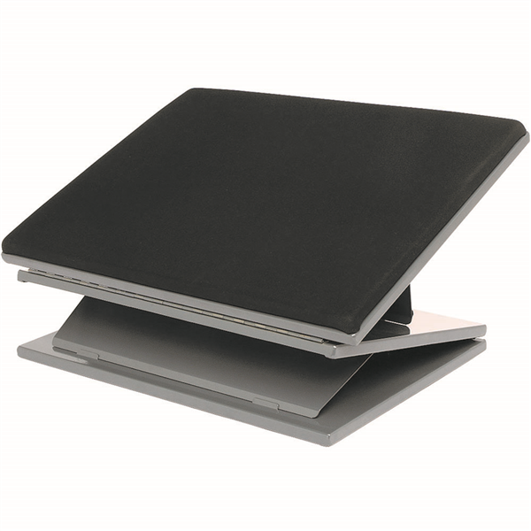 Strong steel construction with Memory Foam top Height and angle adjustable Adjustable from 0 to 36 degrees Adjustable without moving from your chair Independent height and slope adjustments