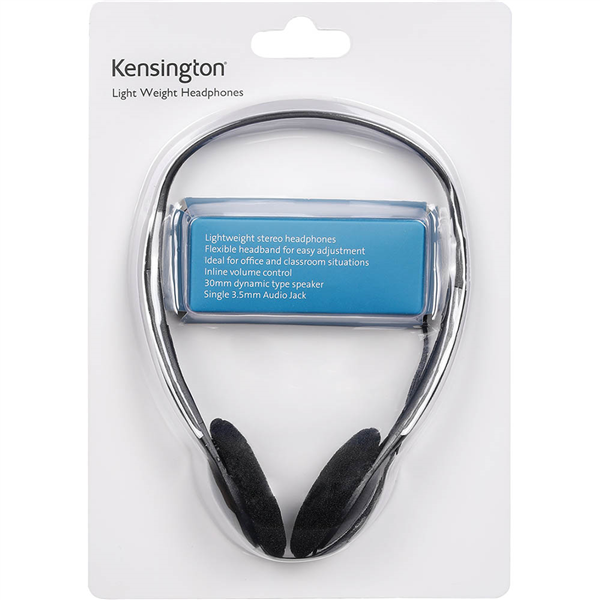 Kensington introduce the ideal solution, with stereo sound and adjustable headset band Lightweight stereo headphones Flexible headband for easy adjustment Ideal for office and classroom situations Inline volume control 30mm dynamic type speaker Single 3.5mm Audio Jack 1 Year Warranty