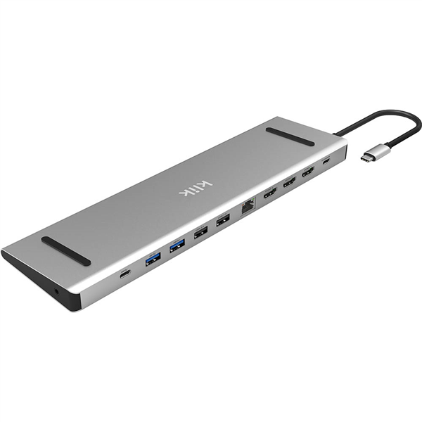 Klik Multi-port Adapter has USB-C to Triple 4K HDMI, 4 x USB-A, 1 x USB-C, Gigabit Ethernet, 3.5mm Audio & up to 100W of USB-C Power Delivery