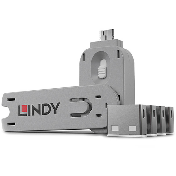 LINDY 40454 USB PORT BLOCKER WITH KEY PACK 4 WHITE