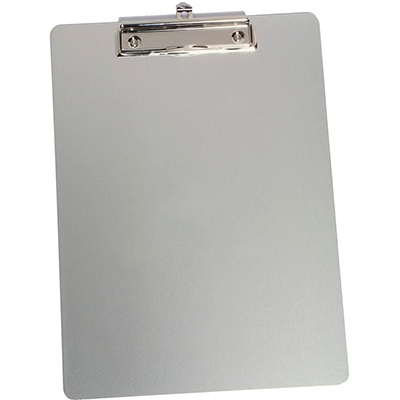 Heavy duty Aluminum clipboard Chrome plated lever clip snaps into place securing your paperwork Provides a smooth writing surface Includes retractable hanging hook Modern look
