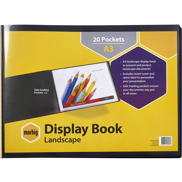 MARBIG DISPLAY BOOK NON-REFILABLE LANDSCAPE 20 POCKET A3 BLACK