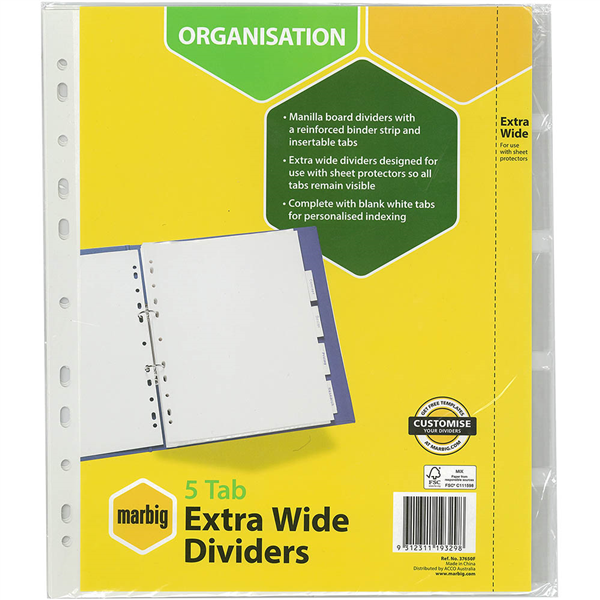 MARBIG DIVIDER INSERTABLE EXTRA WIDE MANILLA 5-TAB A4 WHITE