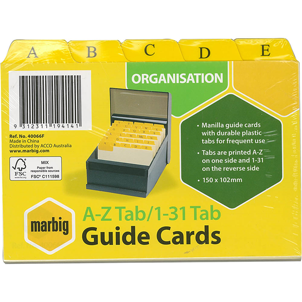 MARBIG GUIDE CARDS A-Z/1-31 TAB 111 X 152MM BUFF MANILLA PACK 30