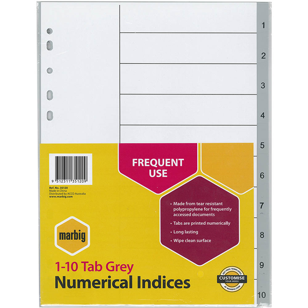 Marbig numerical indices are made of strong polypropylene which allows files to be frequently accessed and wont break or tear with constant use