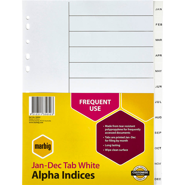 MARBIG INDEX DIVIDER PP JAN-DEC TAB A4 WHITE