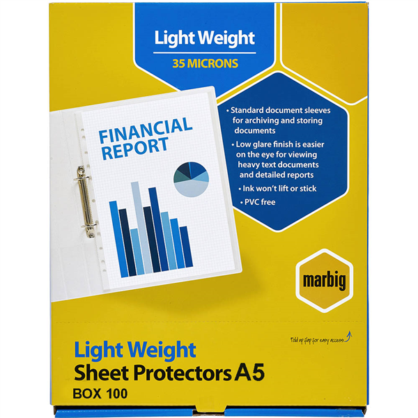 MARBIG LIGHTWEIGHT COPYSAFE SHEET PROTECTORS A5 BOX 100
