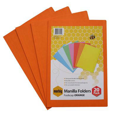 MARBIG MANILLA FOLDER FOOLSCAP ORANGE PACK 20