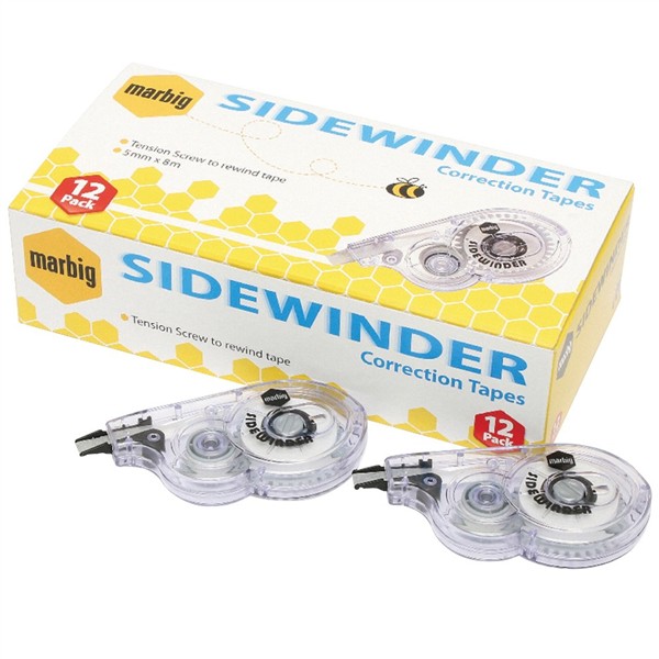 MARBIG SIDEWINDER CORRECTION TAPE 5MM X 8M PACK 12