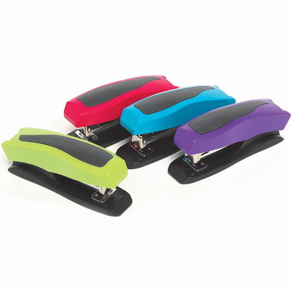 Bright, fun and modern half strip stapler, with sturdy plastic construction and rubber feet to protect desks