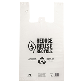 • Our range of legislative compliant re-usable carry bags are made from 100% recycled materials and can be recycled again