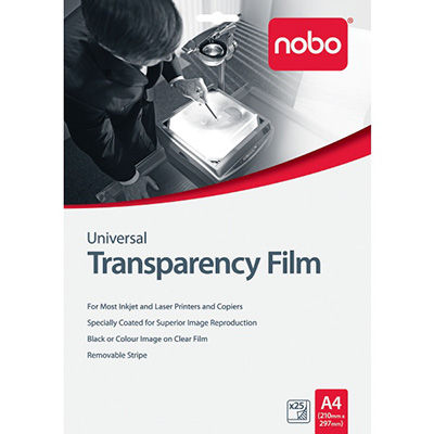 NOBO UNIVERSAL OHP TRANSPARENCY FILM 100 MICRON A4 BOX 25
