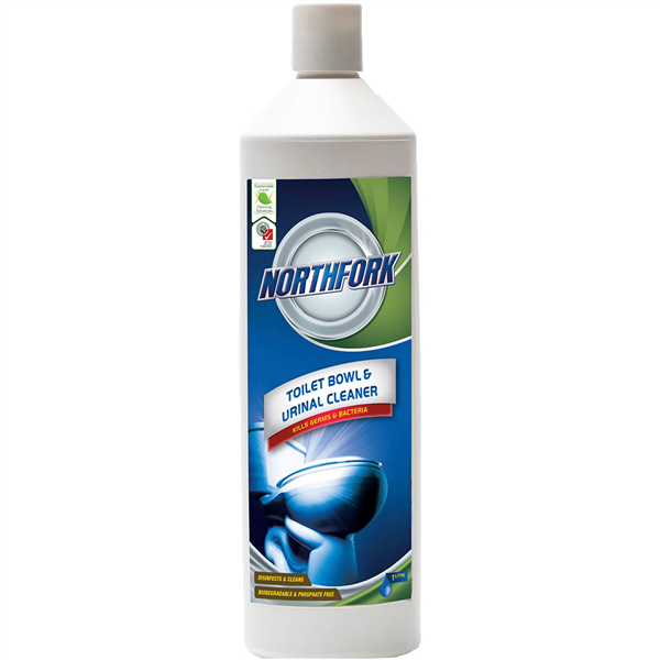 From food service hygiene and washroom products, to housekeeping, personal hand care and laundry washing products, Northfork is ideal for the home and workplace environment Disinfects and cleans in one step Effective against a broad spectrum of germs Helps keep toilet bowls and urinals free of build-up Thickened formula for excellent vertical hold Biodegradable and Phosphate-free Safe for the environment Made in Australia