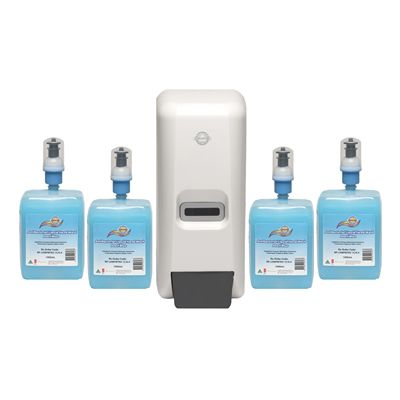 starter pack contains one dispenser and four cartridges Cartridge shrinks and empties to the last drop no spillage, no waste Cartridge doesnt come into contact with the dispenser Cartridges are changeable within seconds With a lockable dispenser Made in Australia