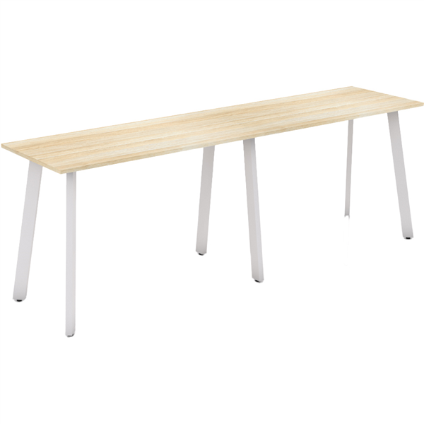 OLG FLARE BAR LEANER 6 LEG WHITE FRAME 3000MM X 750MM NEW OAK RAVINE 2-PIECE TOP