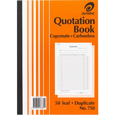 OLYMPIC 750 QUOTATION BOOK CARBONLESS DUPLICATE 50 LEAF A4