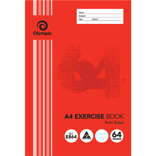 OLYMPIC E864 EXERCISE BOOK 8MM RULED 55GSM 64 PAGE A4