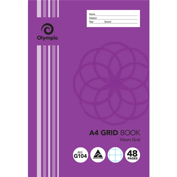 OLYMPIC G104 GRID BOOK 10MM GRID 48 PAGE 55GSM A4