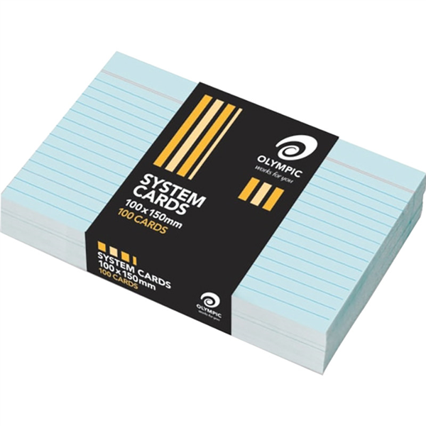 OLYMPIC RULED SYSTEM CARDS 100 X 150MM BLUE PACK 100